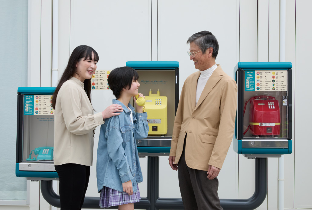 これまで公衆電話は、声をつなげるだけでなく、心と心をつなげ、世界に思いを馳せる物語を生み出してきました。2025年大阪・関西万博では、そのような公衆電話で生まれてきた“つながりの物語”に着目した、「せかいがきこえる伝話」が設置されました。受話器を取り、3桁の番号を押すと、恋人同士の電話でのやりとり、お母さんへの受験結果の電話での報告、それだけではなく、世界の裏側にいる子どもとの会話など、さまざま豊かな物語を、受話器を通して聞くことができます。ぜひ、世界がきこえる物語に耳を澄ましてみてください。